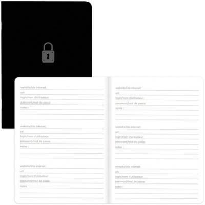 Password Notebook features a compact design with a flexible cover that stores easily in every pocket to keep this notebook with you at all times. Sewn binding is stitched throughout the length of the spine to keep each page permanently attached. Bilingual format accommodates both English and French use. Plus, handy notes sections provide a convenient location to keep random notes and reminders.