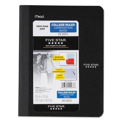 Forget about your average marble composition books. You need school supplies that look great and hold up regardless of your hectic schedule. The durable plastic cover and sewn binding keeps pages safe and secure and are permanently bound into the book. This composition book also features a pocket for easy storage of all your most important papers. The compact size is perfect for both in class and take home assignments, especially if you dont need to remove a page. This composition book wont fall apart from everyday wear and tear. Perfect for permanent class essays and notes. Color cover lies flat when open for convenient notetaking. Book/Pad Binding Type: Sewn; Book/Pad Binding Edge: Side; Book/Pad Sheet Size: 9.75 x 7.5; Book/Pad Subjects/Sections: 1.